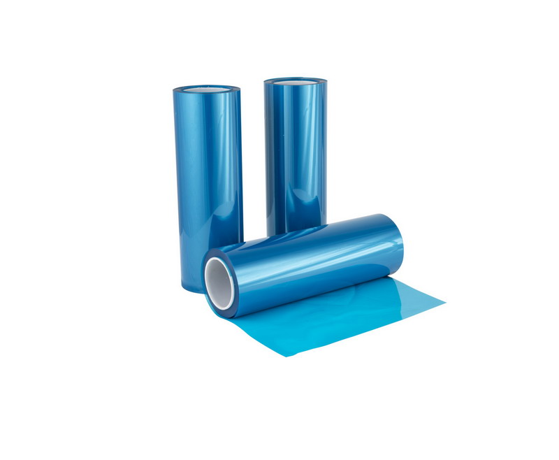 该系列产品是以蓝色聚酯薄膜作为基材,涂布丙烯酸酯类胶粘剂,加之离型膜收卷而成。厚度从50um-125um不等,粘性有低粘、中粘和高粘等可供选择;有防磨损,防刮伤,防尘的作用,颜色易于识别,所有工序均在无尘室中作业完成,保证客户对其洁净度的要求。耐高温、不残胶、贴附性佳、耐刮擦、高光性、挺性佳,耐候性佳(高温/高湿/溶剂)。可重复使用完全无尘室生产,洁净度高。